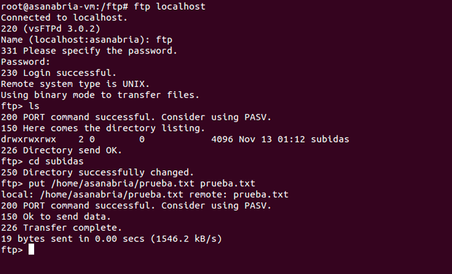 Teniendo claro todos los aspectos de configuración y los comandos básicos del servidor ftp claros, vamos a probar un poco el servidor ftp. Para ello vamos a usar una configuración de ejemplo en la que el usuario anonimo tendrá su propio directorio donde tendrá libertad para trabajar.