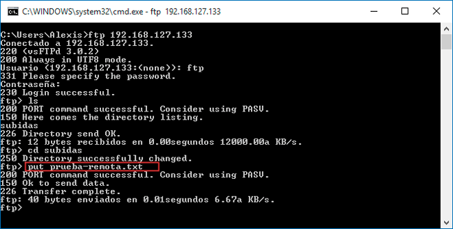 Comandos básicos del cliente FTP