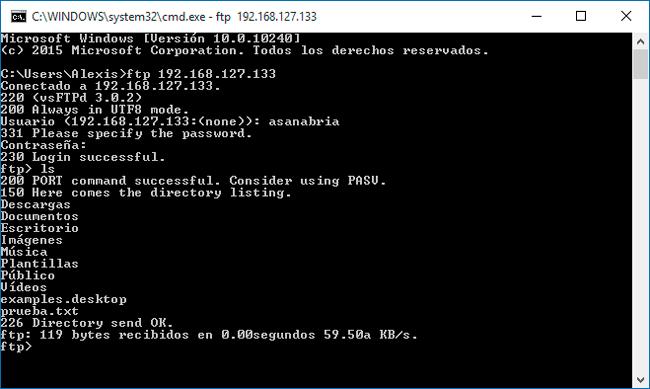 Tampoco tendremos ningún problema al iniciar sesión con una cuenta local en el servidor ftp: